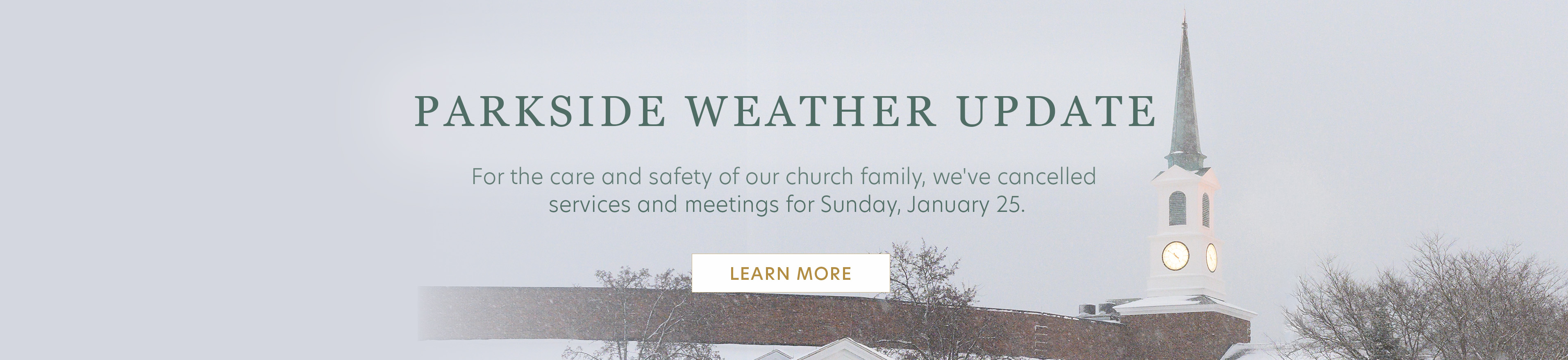 For the care and safety of our church family, we've made the decision to cancel morning and evening services and meetings for Sunday, January ...